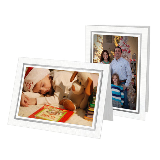 If picking your season's greetings card seems challenging, don’t overthink it! The simplest of designs can have the biggest impact on recipients. Our Snow White Linen cards with Silver Foil Border are a perfect example of the principle that less can be more. The premium, American-made cardstock provides a crisp, elegant canvas, while the silver foil border adds a shimmering frame that accentuates the image within. With a minimalist photo insert card like this, your subject becomes the star, whether it's a family portrait, a stunning landscape, or an inspiring moment from recent travels. Order now to elevate your seasonal greetings with simplicity and grace.