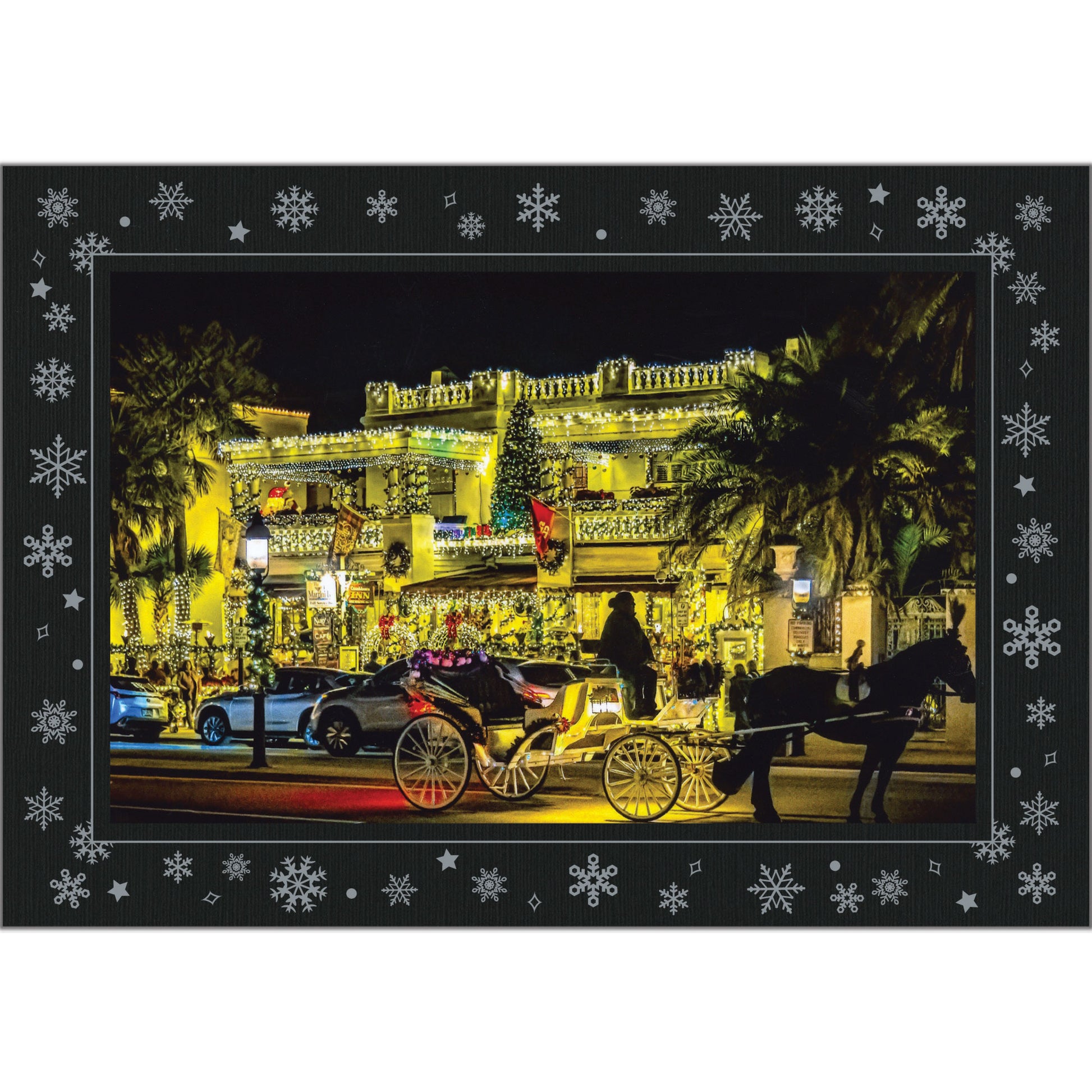 1600 - Black Linen, Silver Foil Snowflake Border, Blank Back, set of 10 cards