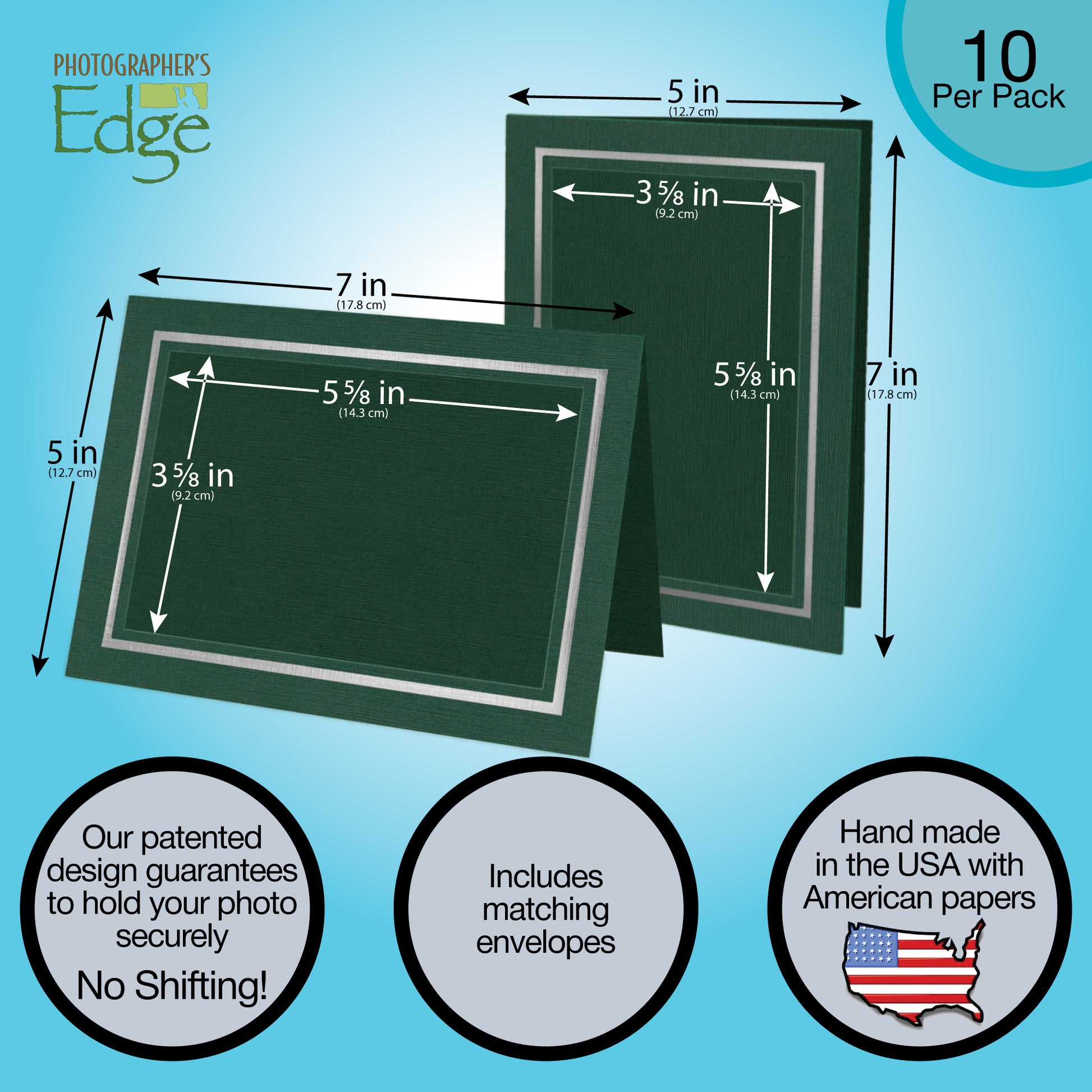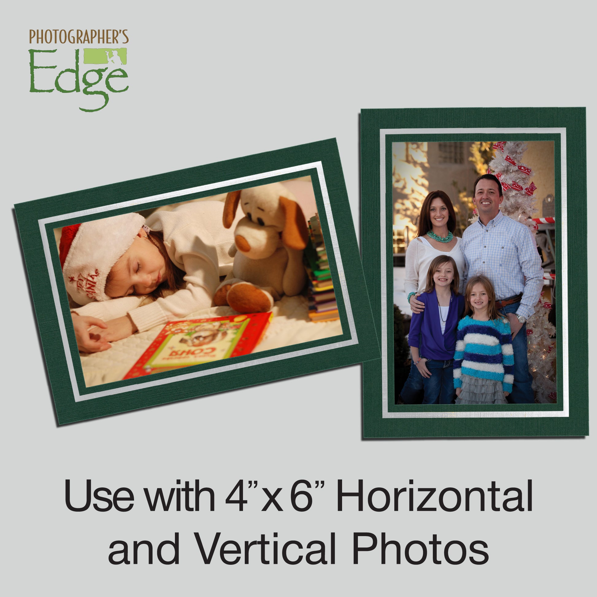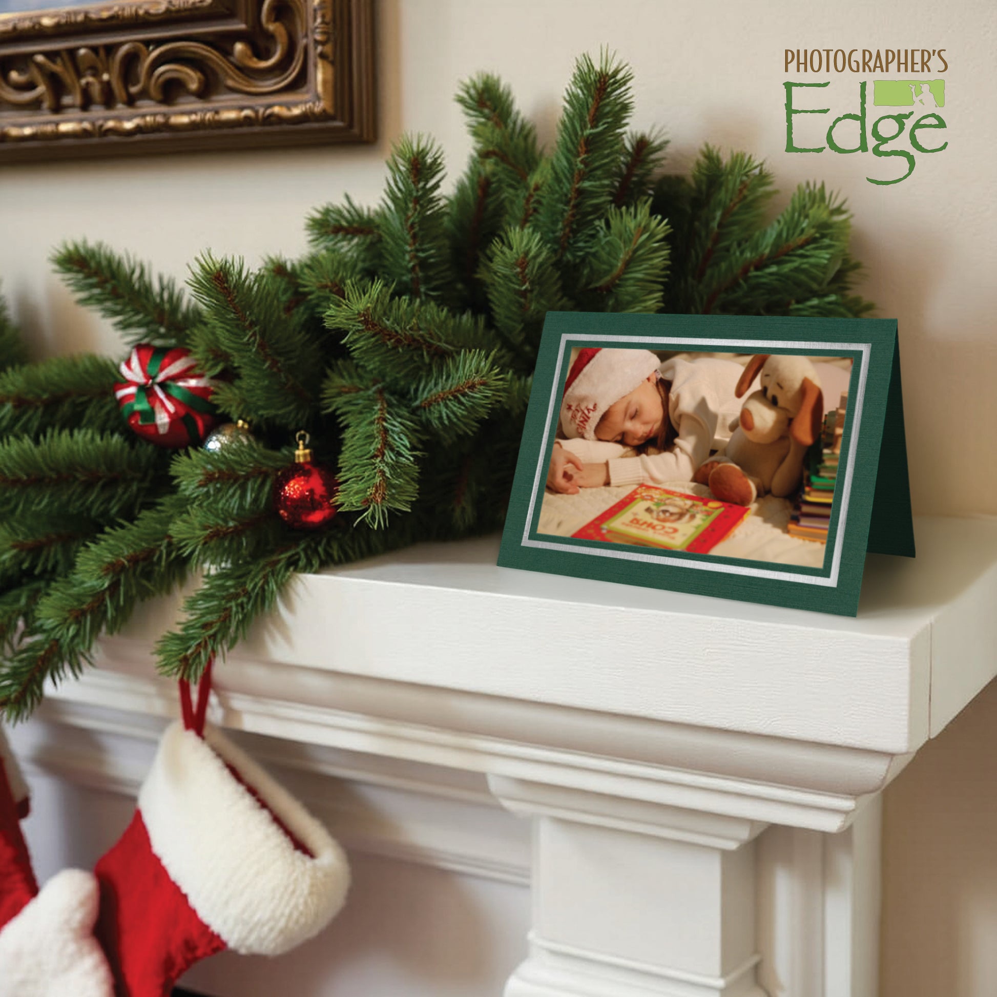 Add a festive flourish to your memories with these Pine Green Linen holiday cards. The Silver Foil border sparkles like holiday lights, framing your 4” x 6” photos in warmth and elegance. Think snowy family portraits, cozy pet pictures, or shimmering autumn leaves—the possibilities are endless! No matter what scene you may be showcasing, the rich green linen frame complements a variety of colors and tones. Each photo insert card measures 5” x 7” and includes a spacious blank inside for personal messages. With their flexible design, these cards work equally well for horizontal or vertical photos, making them a go-to choice for all your seasonal sending needs.