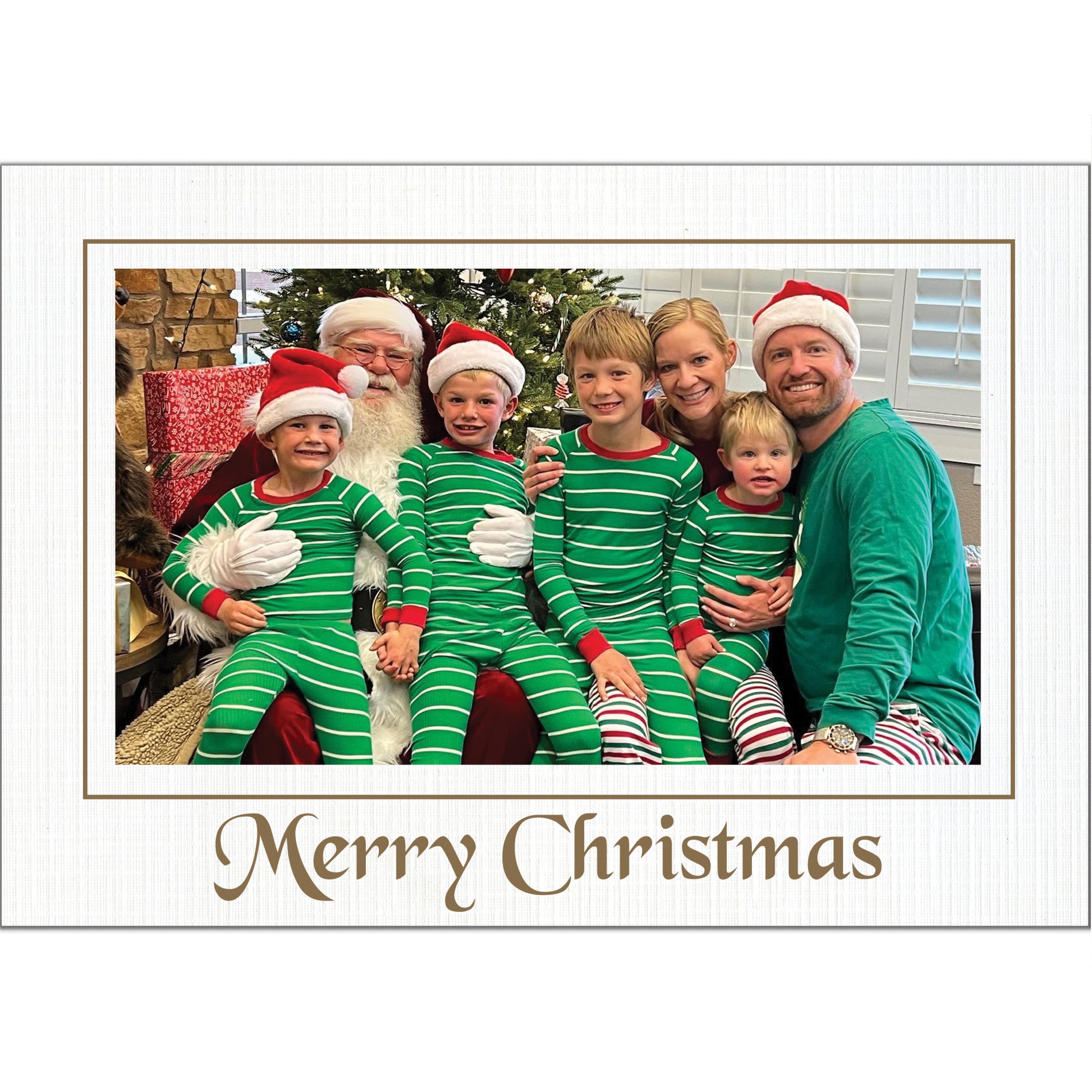 1615 - Snow White Linen, Merry Christmas in Gold Foil, Horizontal Blank Back, set of 10 cards