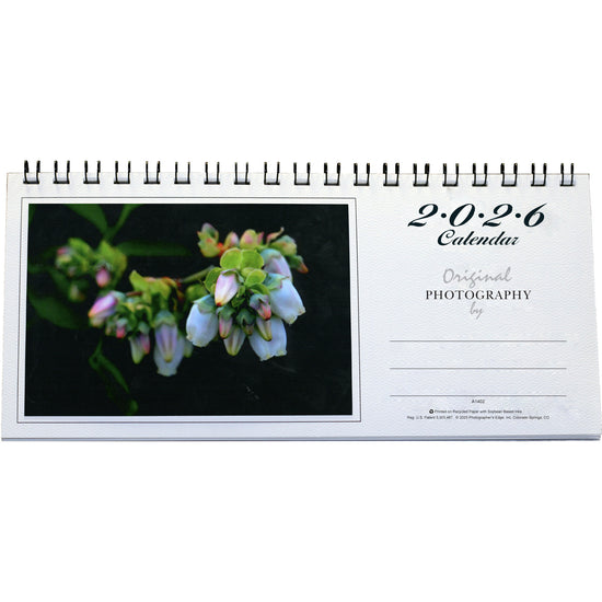 Turn your photos into freestanding desktop calendars! Each calendar allows you to use 13 of your 4' x 6' horizontal photos and is printed with soybean based black ink on recycled Bright White cardstock. An area for your personal information is on the front of each calendar. Comes in a clear plastic bag. Measures 5' high x 11' wide.