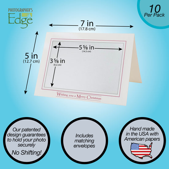 Capture the joy of the season and share it with those who matter most using our Bright White "Wishing you a Merry Christmas" photo insert cards. They are thoughtfully designed for simplicity and elegance, making your photos the star of the show. The front of the card features a warm, festive greeting in scarlet red ink, paired with a generously sized horizontal photo window. The clean, Bright White cardstock is both durable and refined, providing the ideal backdrop to highlight your 4" x 6" photos. Ideal for both personal and professional use, these photo Christmas cards exude sophistication while maintaining a heartfelt charm.