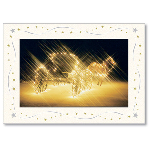 These stunning holiday photo cards will let your memories sparkle just as brilliantly as the design that surrounds them. Adorned with a brilliant mix of gold and silver stars, these cards evoke the beauty of a starry winter night. The spacious 4” x 6” photo window is perfect for framing everything from family photos to magical moments by the fire, with the shimmering setting adding the perfect festive touch. The clean white background of these photo insert cards ensures you and your family are the main event, and with a blank back, you’ll have plenty of space to include your personal holiday message.