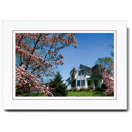 759R - Bright White, Dusty Rose Border, Blank Back, set of 10 cards