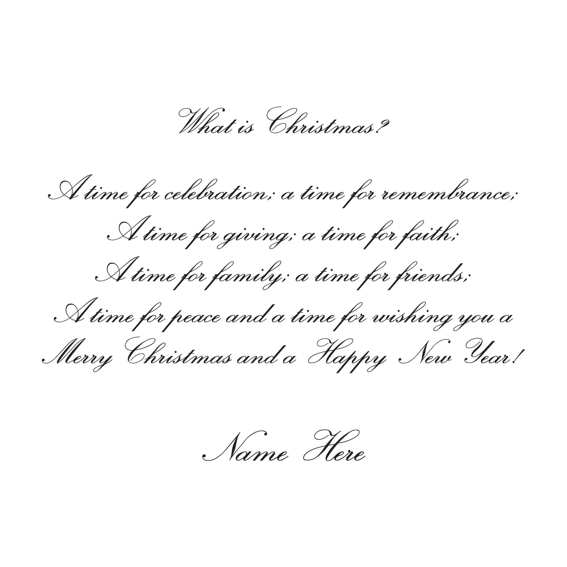 This Standard Holiday Imprint will be on the INSIDE of your holiday cards or on the Peel & Stick Bright White Stationery, sold separately (A1475)!