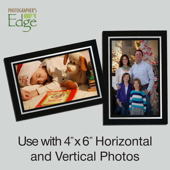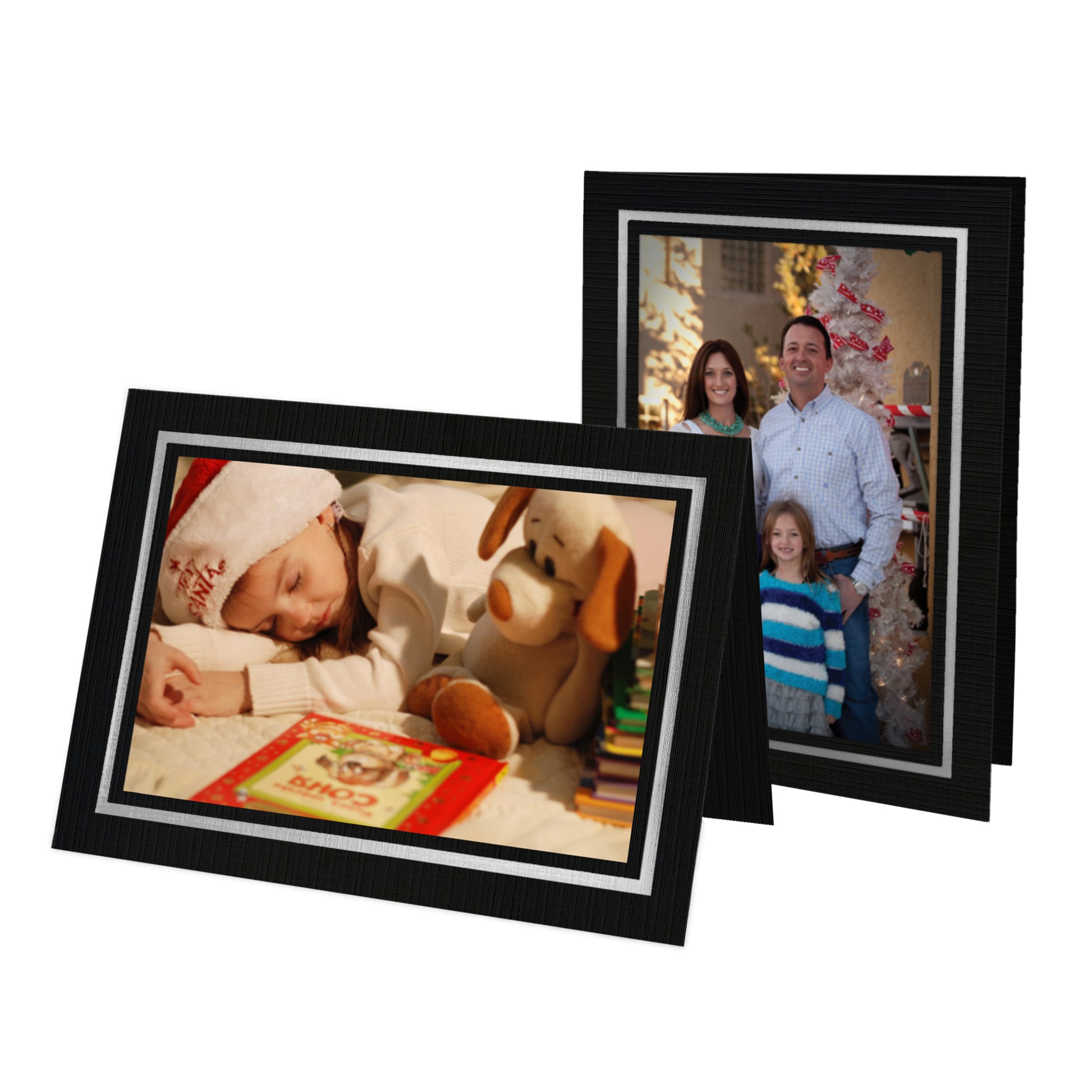 Celebrate the holidays with a touch of refined elegance. Our Black Linen holiday cards with photo insert offer a perfect blend of timeless sophistication and modern design, ideal for showcasing your most treasured memories. The black linen cardstock exudes luxury, while the silver foil border adds a polished, elegant frame for your 4" x 6" photos. To complement the design, each set of 10 cards comes paired with crisp Snow White Linen envelopes, creating a strikingly sophisticated contrast. Whether you're celebrating with close family or sending love across oceans, these photo insert cards are sure to make a lasting impression.