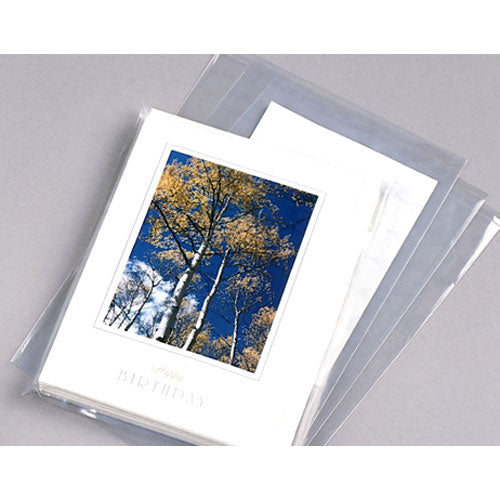 A cost effective way for packaging 1 to 6 cards with envelopes. These 6' x 9' photo-safe bags come with round white labels to seal and act as a price tag.