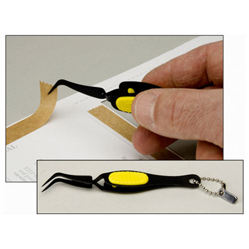 This precision tip tweezer is absolutely the best way we've found to remove the adhesive backing on Photographer's Edge card tape strips. The Tweezer Bee has an angled, pointed tip, reverse grip & non-stick coating, for extremely quick & accurate performance. Ergonomically designed with comfort grip, for extended use. Comes with protective tip cover when not in use.